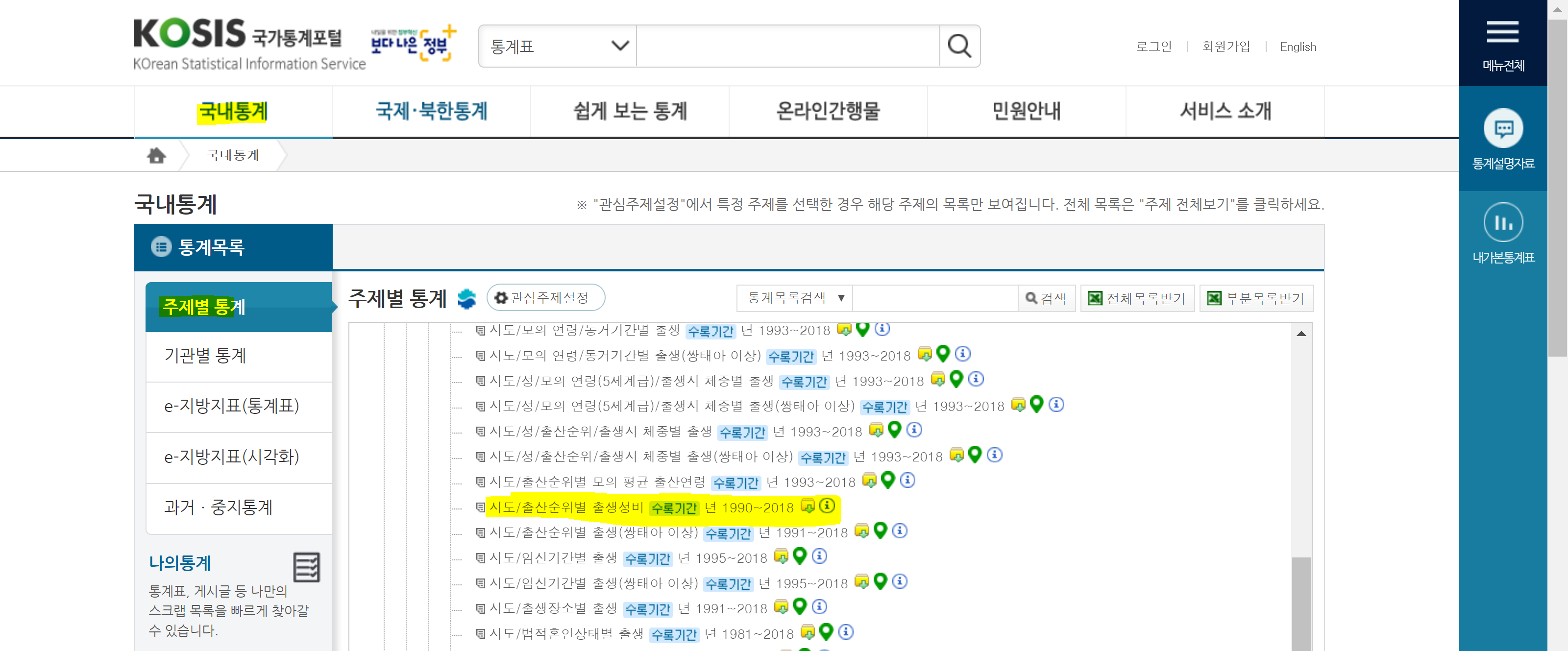 종목별 통계는 'KOSIS'에서 확인할 수 있습니다.