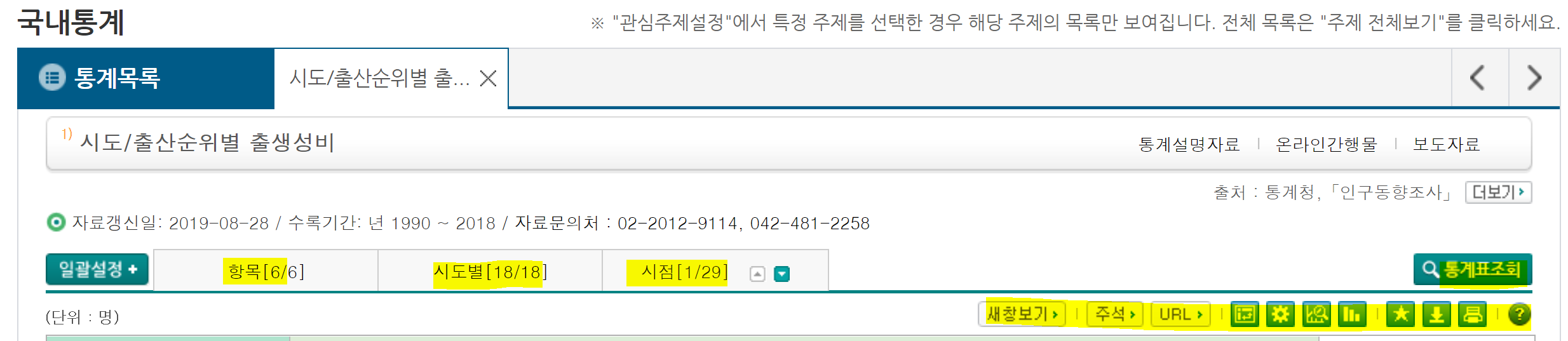 통계 데이터는 원하는 데이터만 조회할 수 있도록 옵션설정이 가능하며, 각 소프트웨어로 다운로드가 가능합니다.