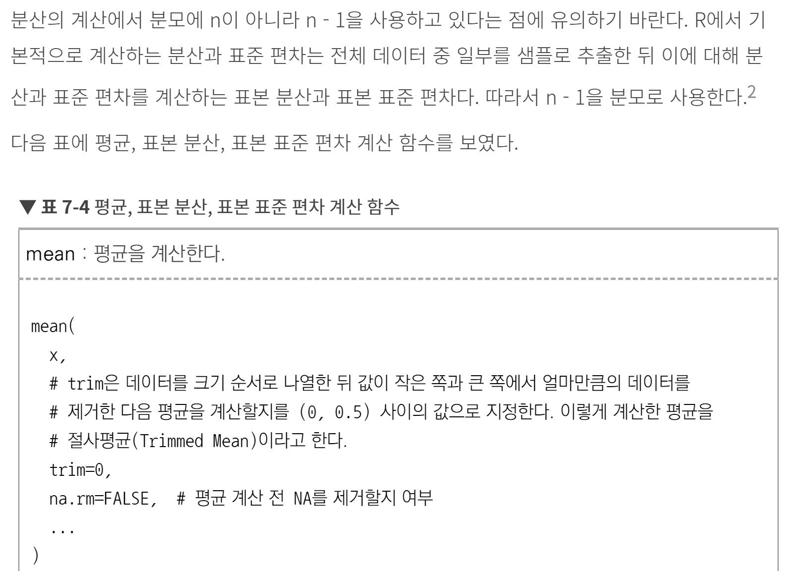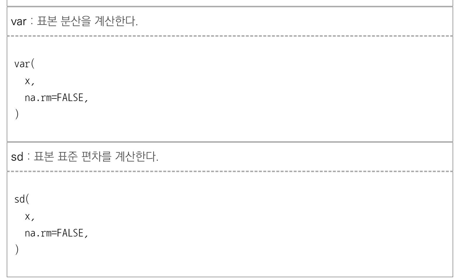 R을 이용한 데이터 처리 & 분석 실무: 표본 평균, 표본 분산, 표본 표준 편차