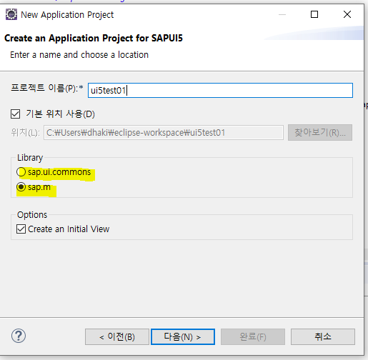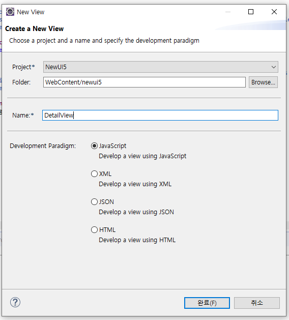 File ▶ Other ▶UI5 ▶ Application Project ▶ProjectNmae
