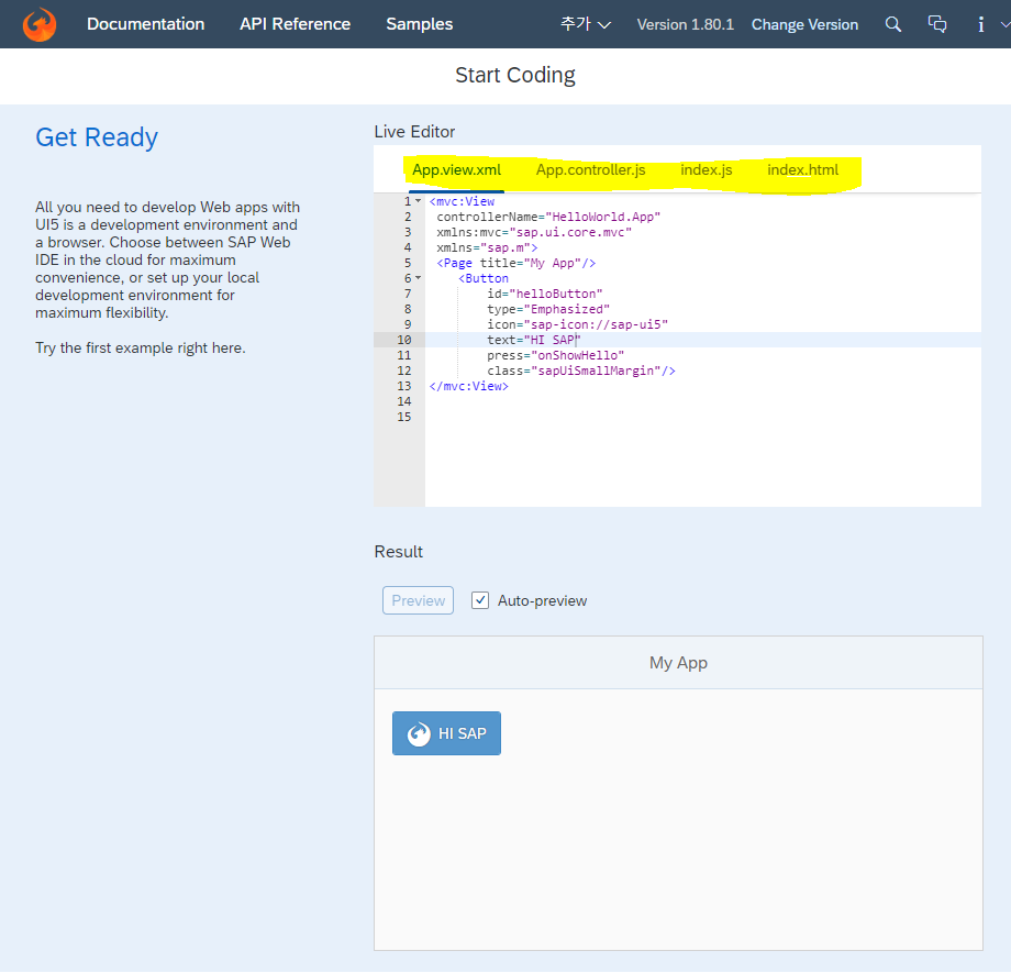 SAP Fiori 개발 튤을 설치하는 방법입니다. 아래 링크를 클릭하여 UI5 SDK 다운로드 홈페이지로 이동합니다. https://sapui5.hana.ondemand.com/ SAPUI5 SDK - Demo Kit sapui5.hana.ondemand.com 가장 상단의 D..