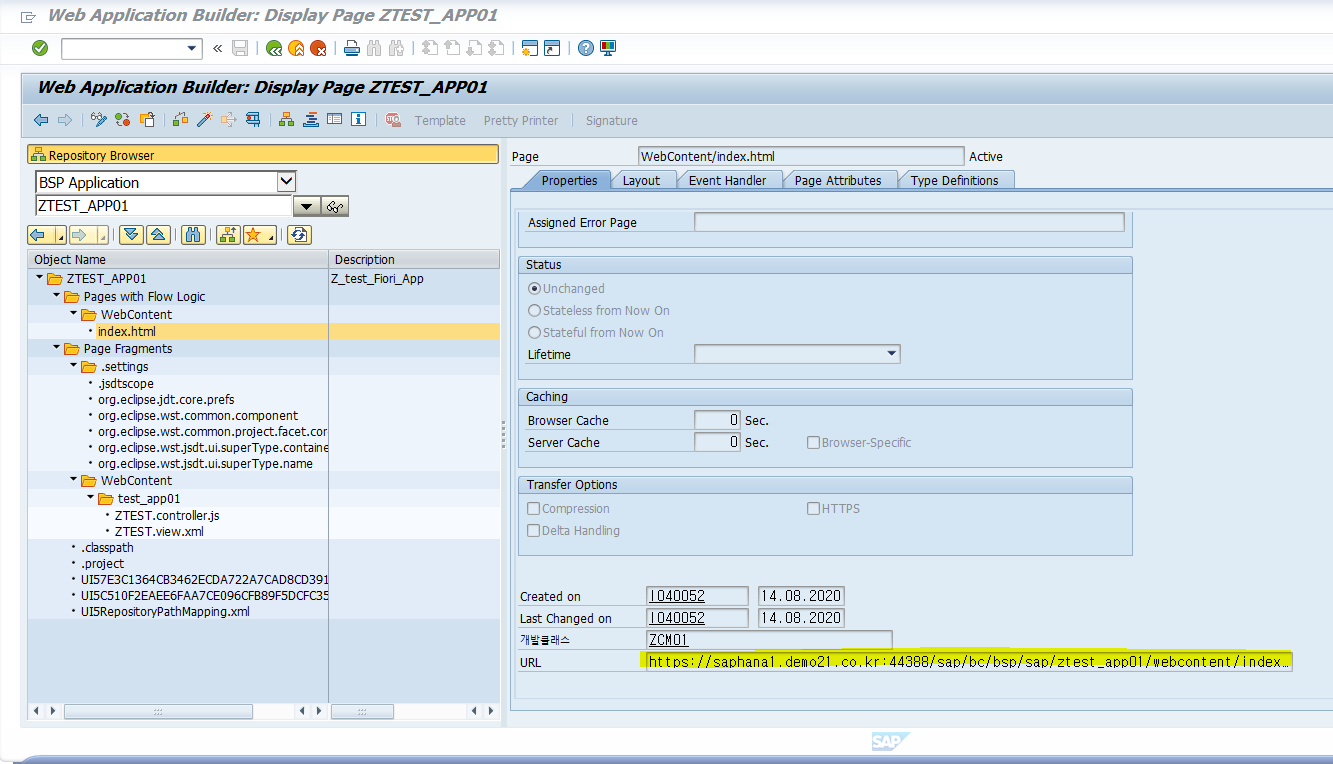 SAPUI5 ABAP Repository에서 Bsp Application 생성
