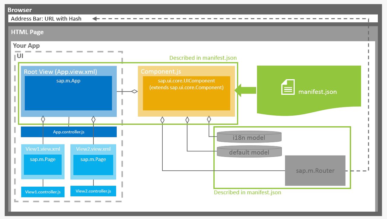 일반적으로 View는 XML로 작성하며, SAP의 데이터 교환은 ODATA로 진행하기 때문에 인터페이스와 관련된 내용은 JSON으로 작성하는 것이 좋습니다.