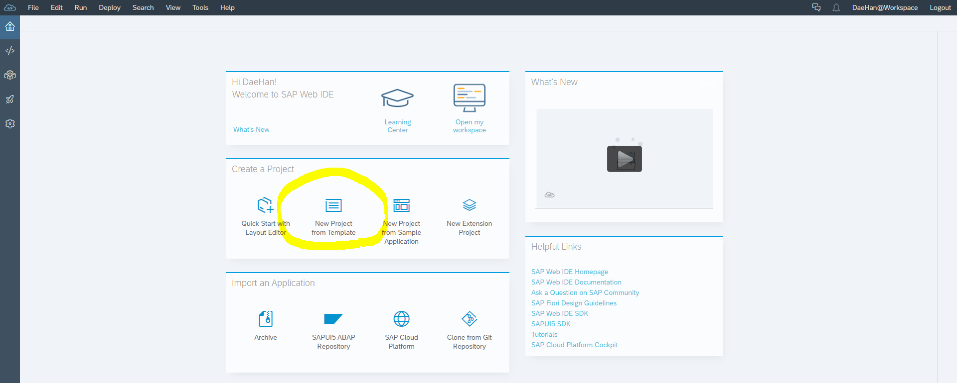 SAP Web IDE 접속 및 템플릿 생성
