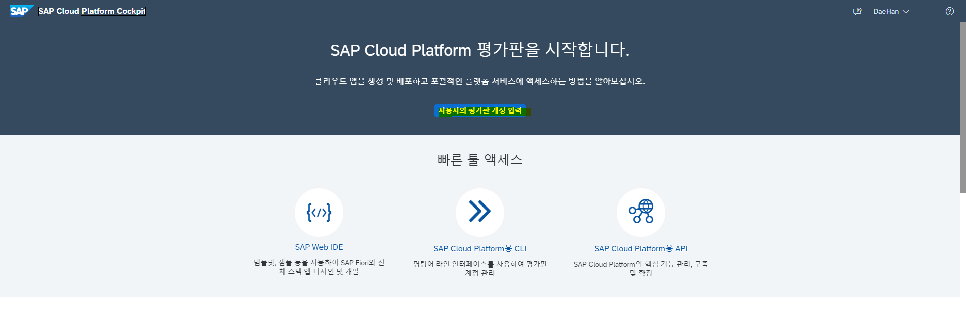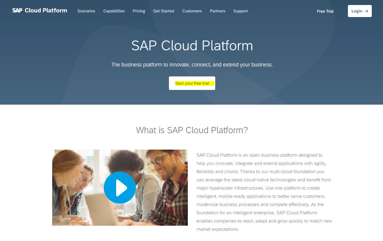 SCP 홈페이지 링크 : https://cloudplatform.sap.com/index.html