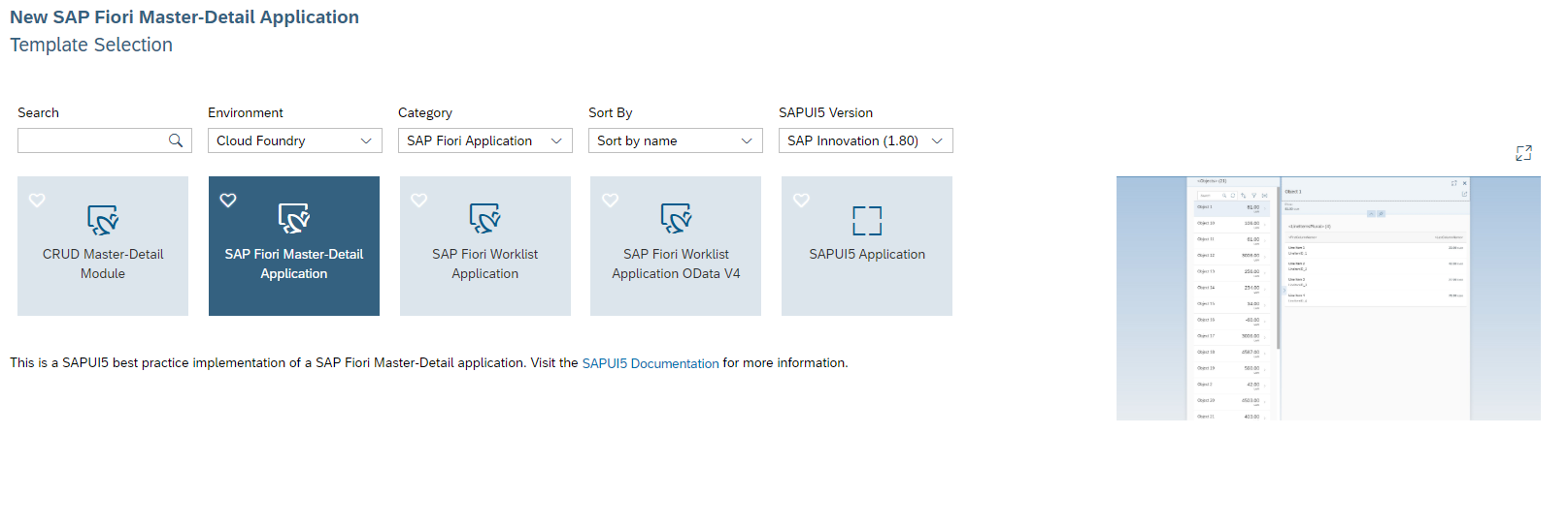 현재 Envronment는 ABAP, Neo, Cloud Foundry가 있습니다. ABAP & neo - Category ( 2020.08.05 ) Cloud Foundry - Category ( 2020.08.05 ) [Template] CRUD Master-Detall Module [Template] SAP Fiori Mas..