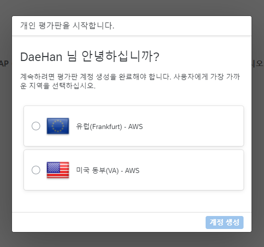 '사용자 평가판 계정 입력'을 통해 SCP 활성화