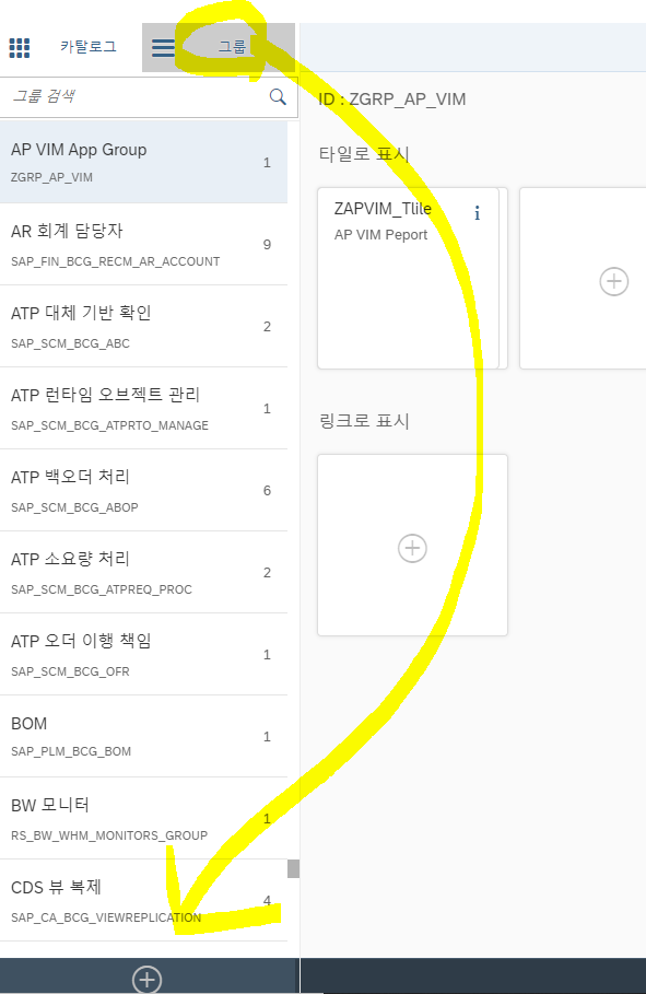 타일을 추가하려는 계정의 Role에 SAP Fiori Catalog로 생성한 App을 선택 및 등록
