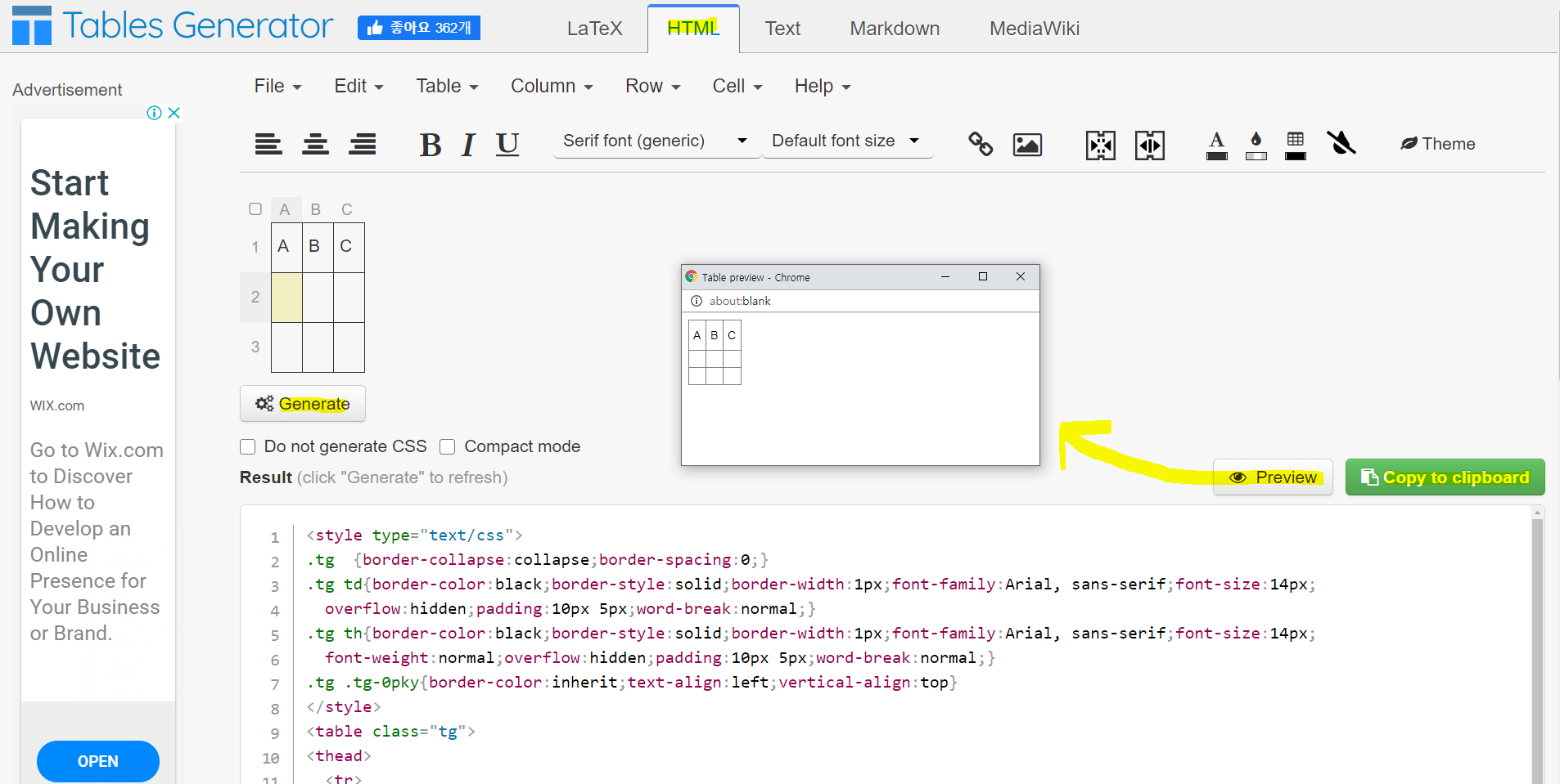 테이블을 만들어 HTML 코드로 변환할 수 있습니다.