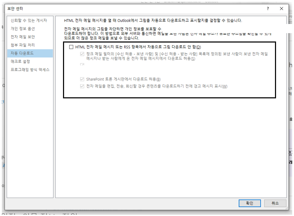 위와 같이 아웃룩에서 이미지가 깨지는 현상이 발생할때의 해결방법입니다.
