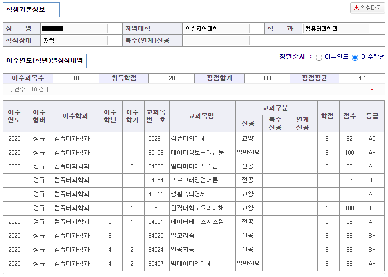 일부과목은 위 포스트에서 확인 할 수 있습니다.