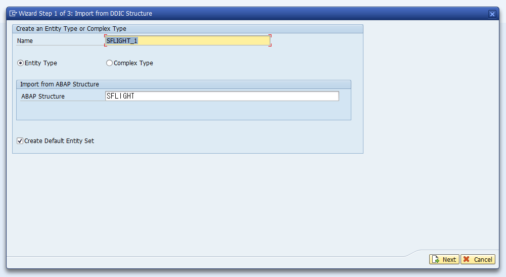 Name - UI5에서 사용되며, 대소문자 구분 , ABAP Struchure - SAP의 샘플테이블(SFLIGHT) 선택(대소문자 미구분)