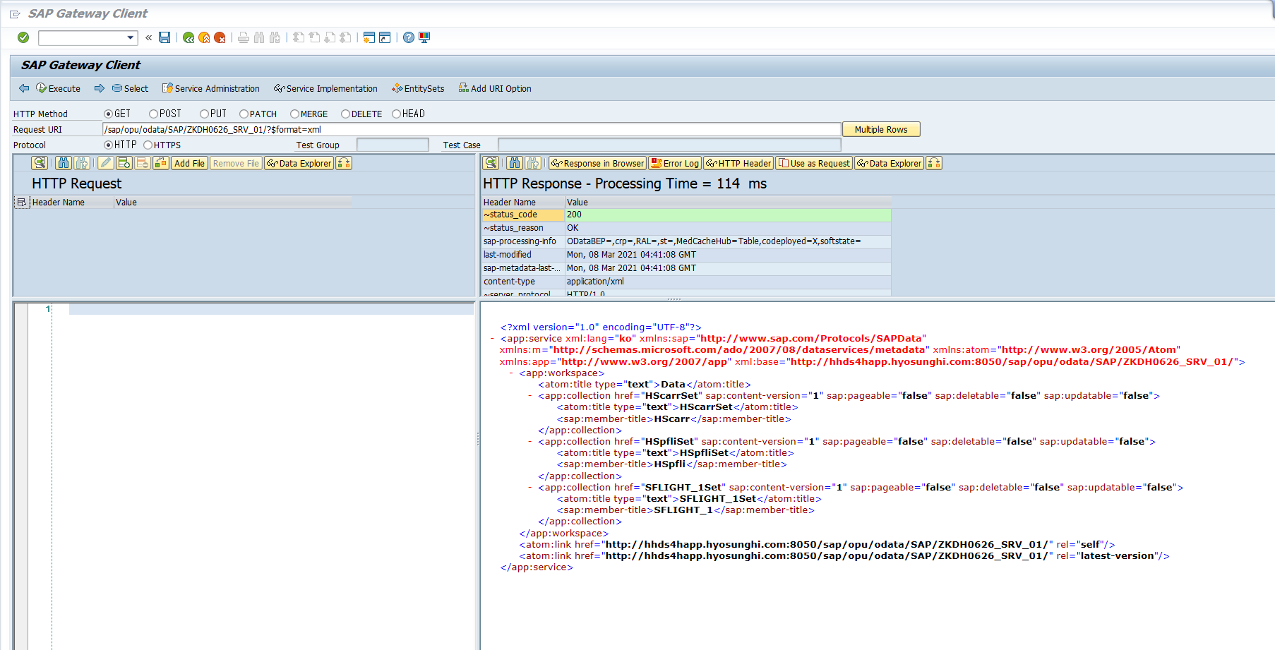 SAP Gatway Client 실행 - MataData를 통해 데이터 점검및 확인