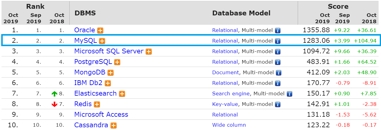 데이터베이스 순위 조회 : https://db-engines.com/en/ranking