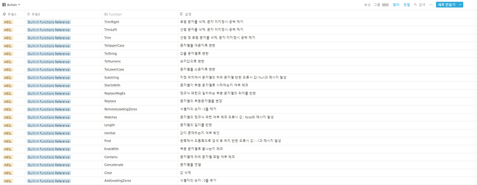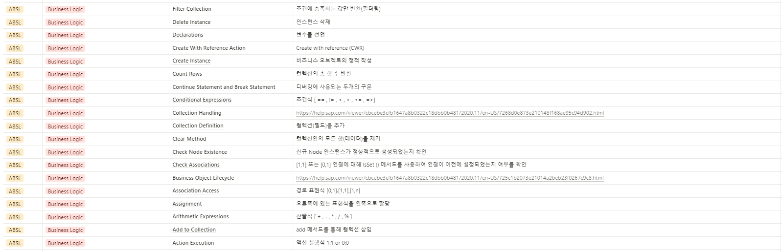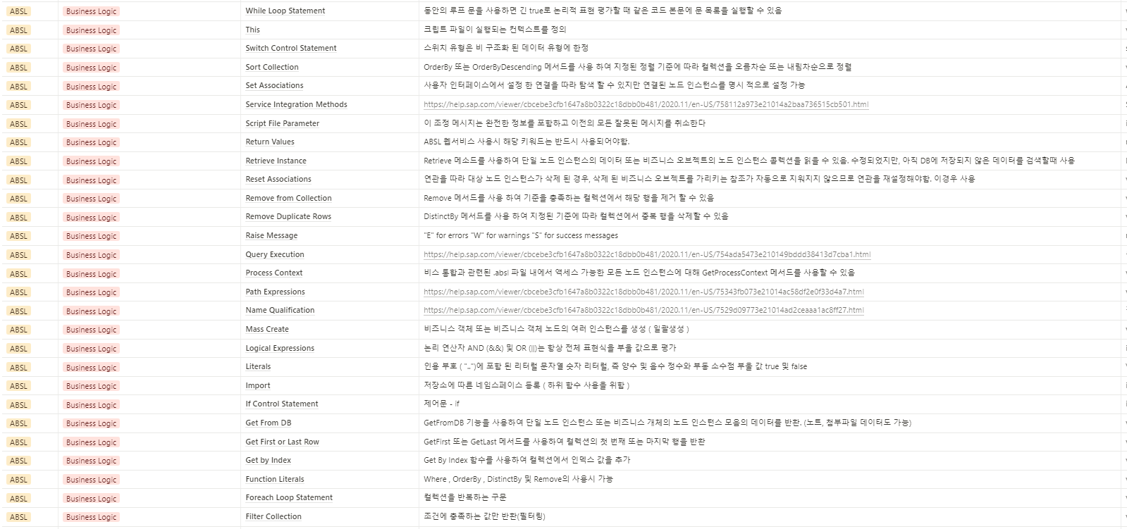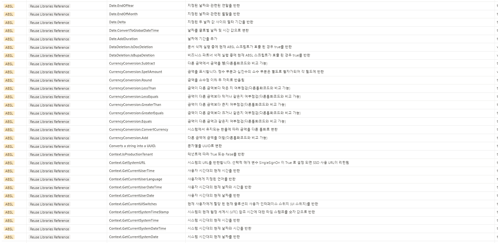 SAP Cloud Application Studio에서 사용되는 Script (ABSL) 의 함수목록 입니다.