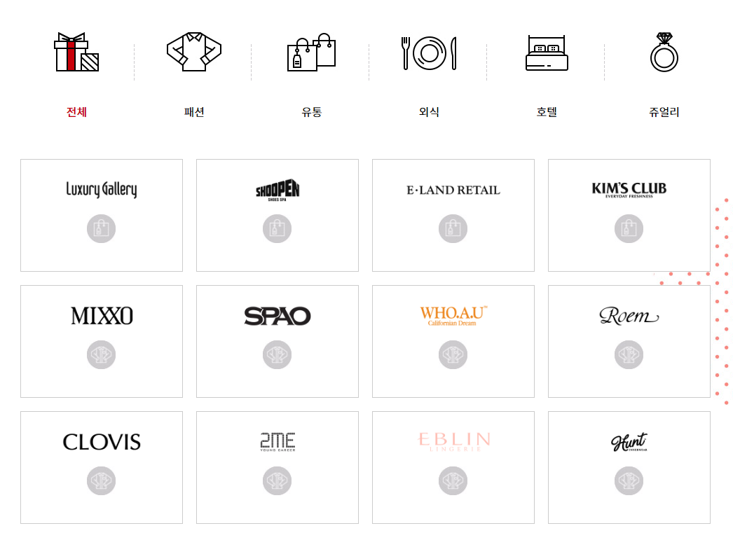 이랜드 통합 멤버십은 산하 모든 매장(애슐리, 스파오, 로이드 등)에서 포인트 적립이 가능하고,