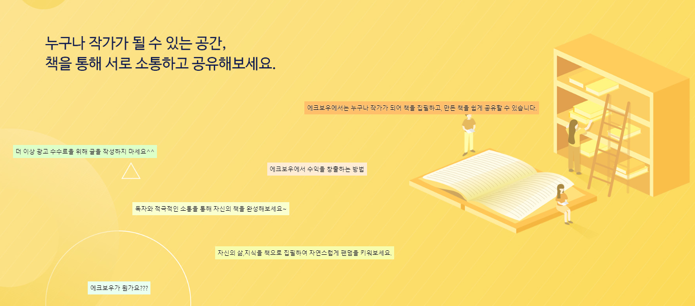 누구나 손쉽게 작가가 될 수 있는 플랫폼인 에크보우입니다.