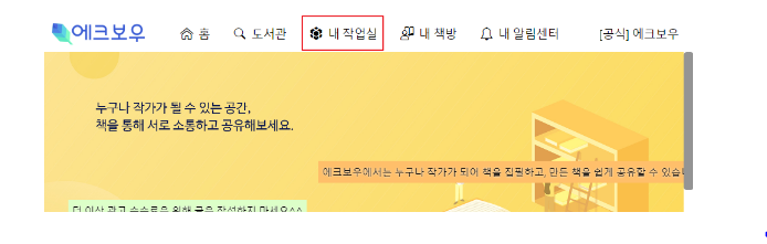 에크보우에 로그인 후 화면 상단에 [내작업실]에 들어갑니다.