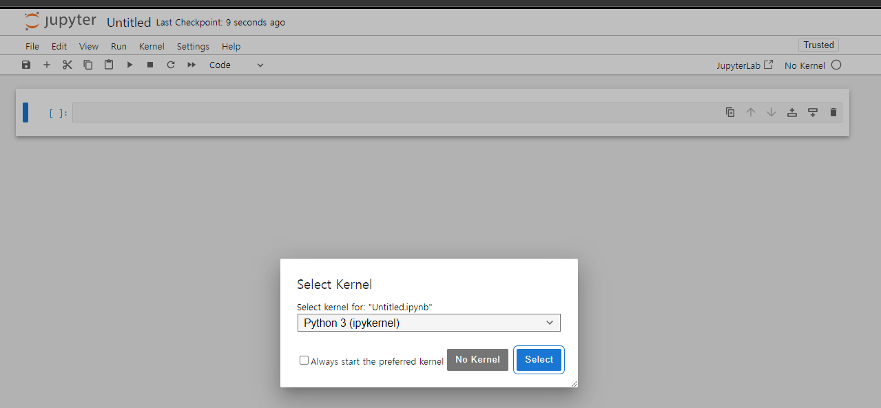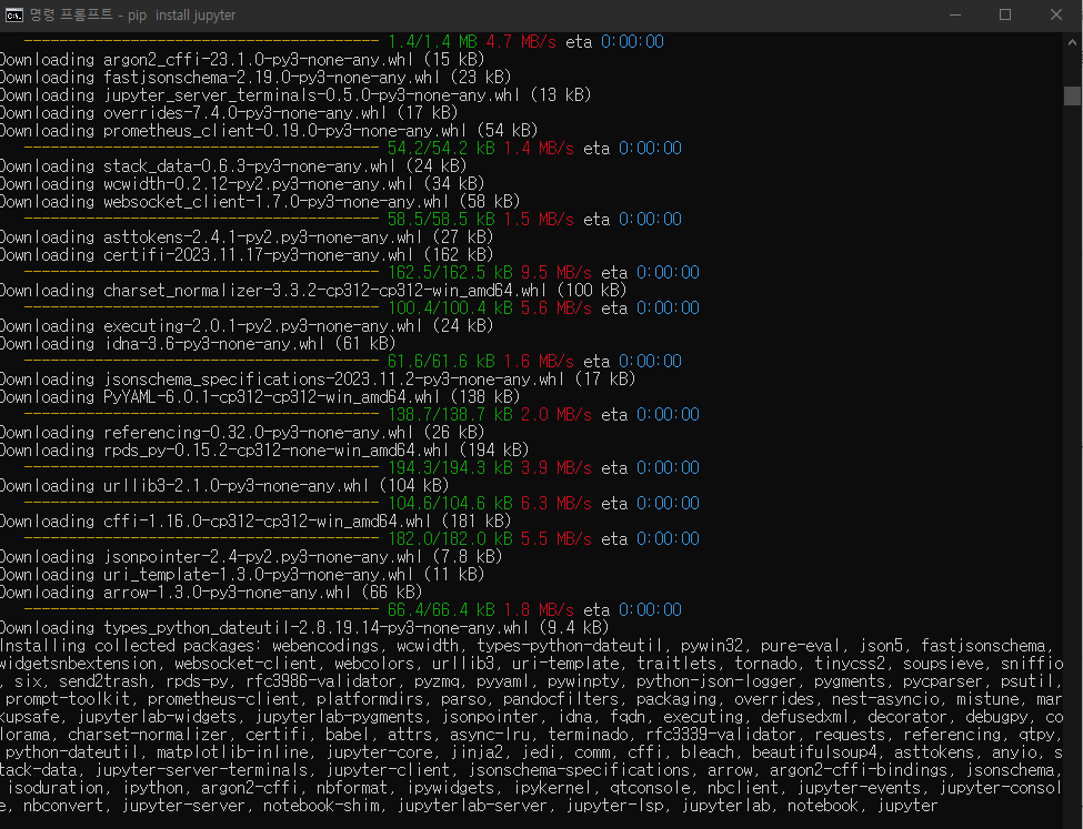 파이썬 대화형 셸 에서 pip install jupyter 입력하여 설치