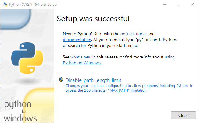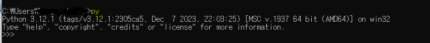 명령 프롬프트(cmd) 호출하여 py 입력, 설치 완료 여부 점검