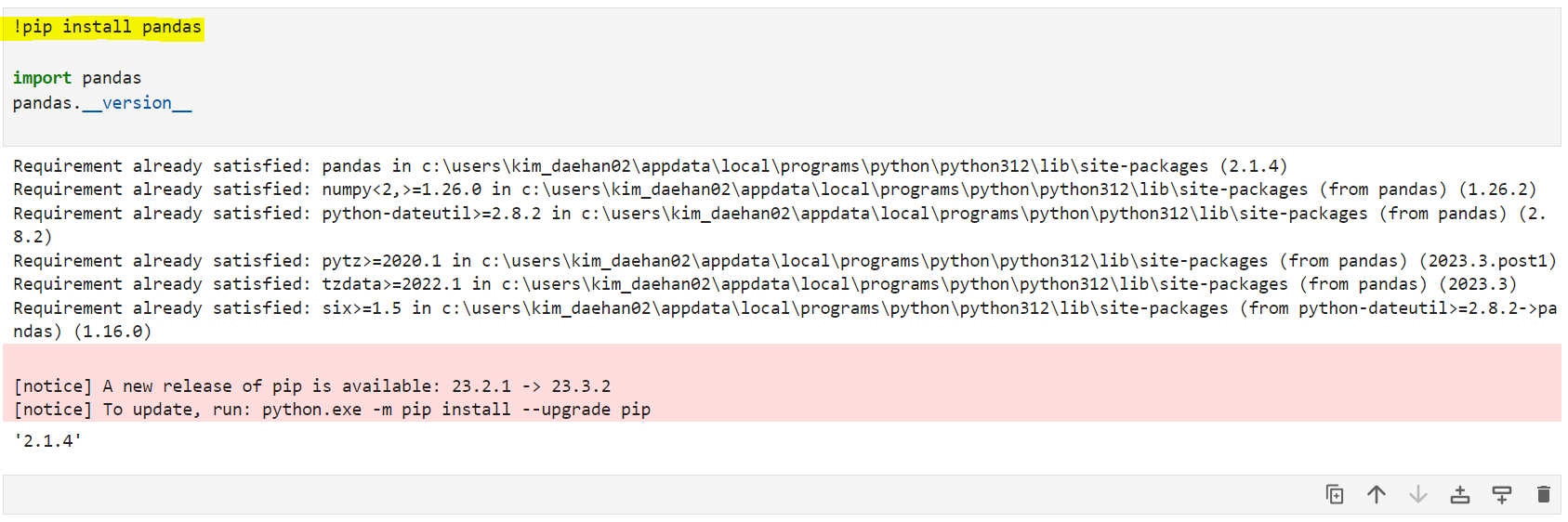Jupyter 에서 pandas 라이브러리를 설치 ( pip ) 및 버전 확인