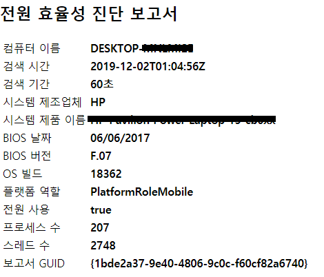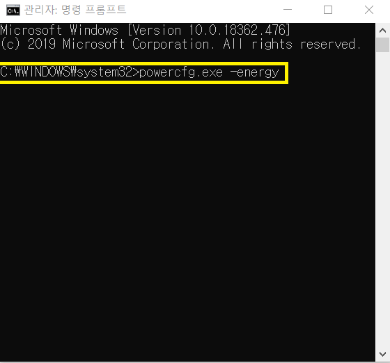 powercfg.exe -energy 입력 및 엔터를 누릅니다.