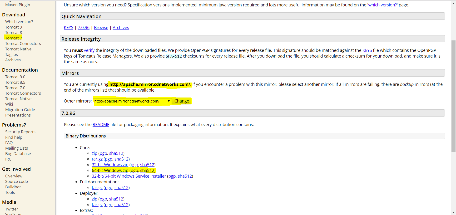 Tomcat 7 -> Core : 64-bit Windows zip를 설치하여 압축을 푼 후 bin -> startup.bat을 실행합니다.