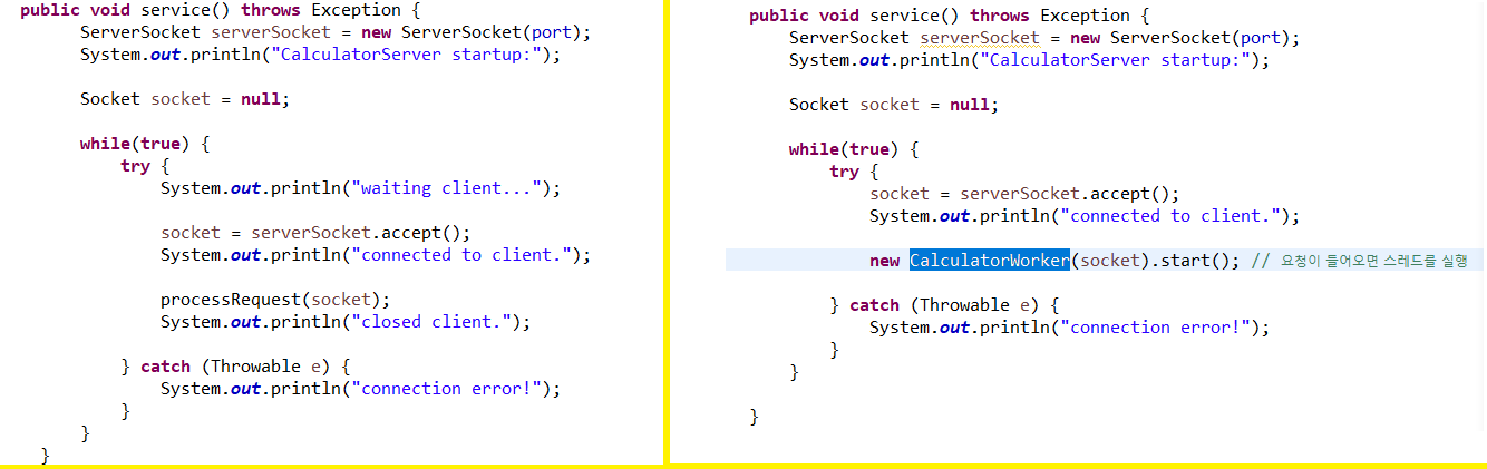 그러나 스레드를 사용하면 다중 클라이언트 접속이 가능합니다.