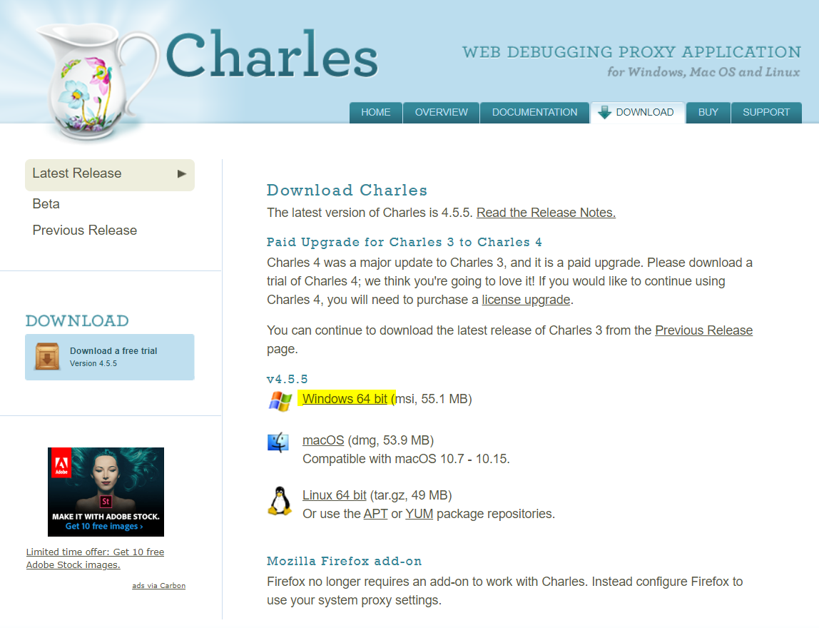 Download Charles The latest version of Charles is 4.5.5. Read the Release Notes. Paid Upgrade for Charles 3 to Charles 4 Charles 4 was a major update to Charles 3, and it is a paid upgrade. Please download a trial of Charles 4; we think you're going to lov
