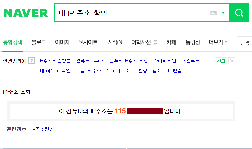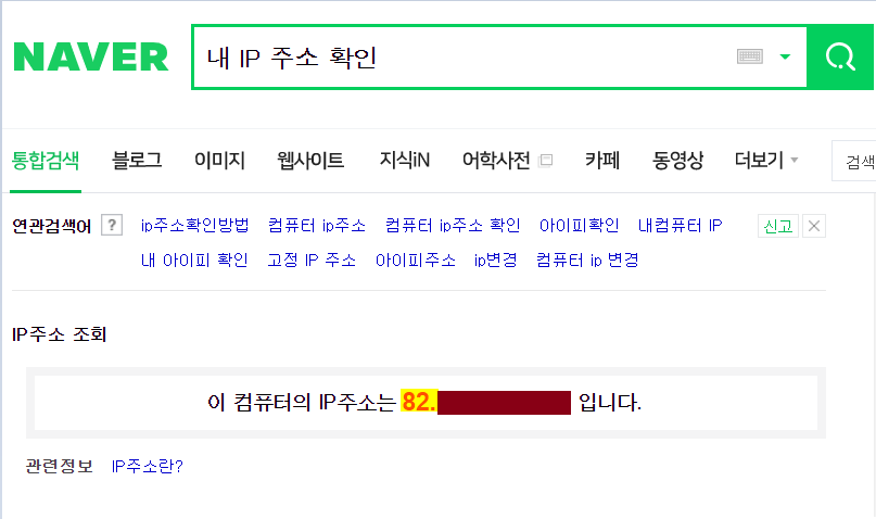 프록시 서버를 설정하기 앞서 네이버에서 IP 주소를 확인합니다