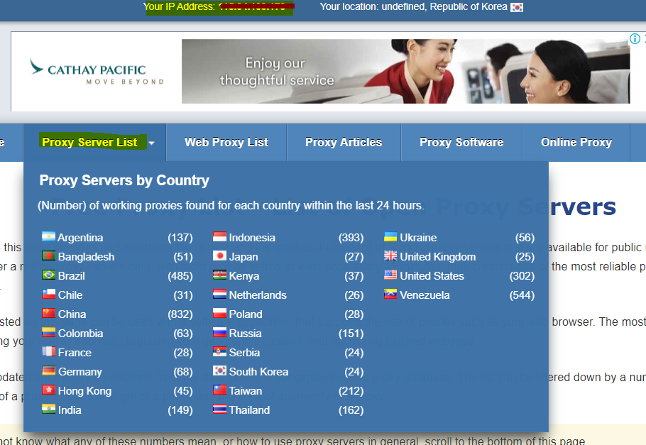 위 링크에서 IP를 변경할 국가를 선택합니다.