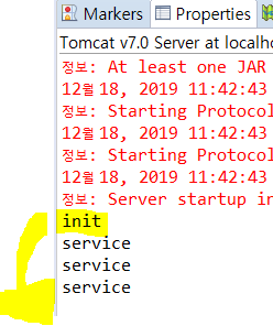 배치를 설정하여 해당 프로그램이 실행되면 자원준비를 위해 init메소드 와 service메소드가 실행되고 이후 부터는 service만 호출됩니다.