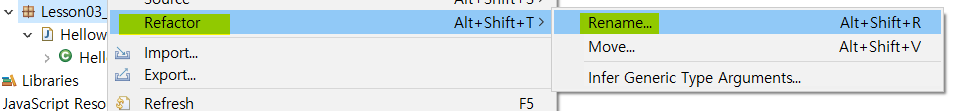 [ 이클립스 자바 클래스 이름 변경 : Refactor -> Rename ]