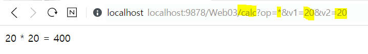 작성한 [ url : /calc ]을 통해 계산기 로직을 웹브라우저에서 테스트합니다.