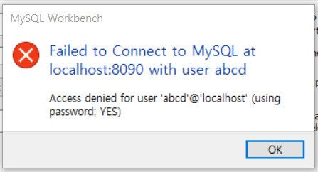 MySQL Workbench를 통해 DB에 접근 시 위 와 같은 오류가 발생한다면 다음과 같이 조치합니다.