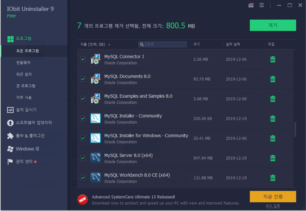 PC의 소프트웨어 완벽 제거 및 업데이트